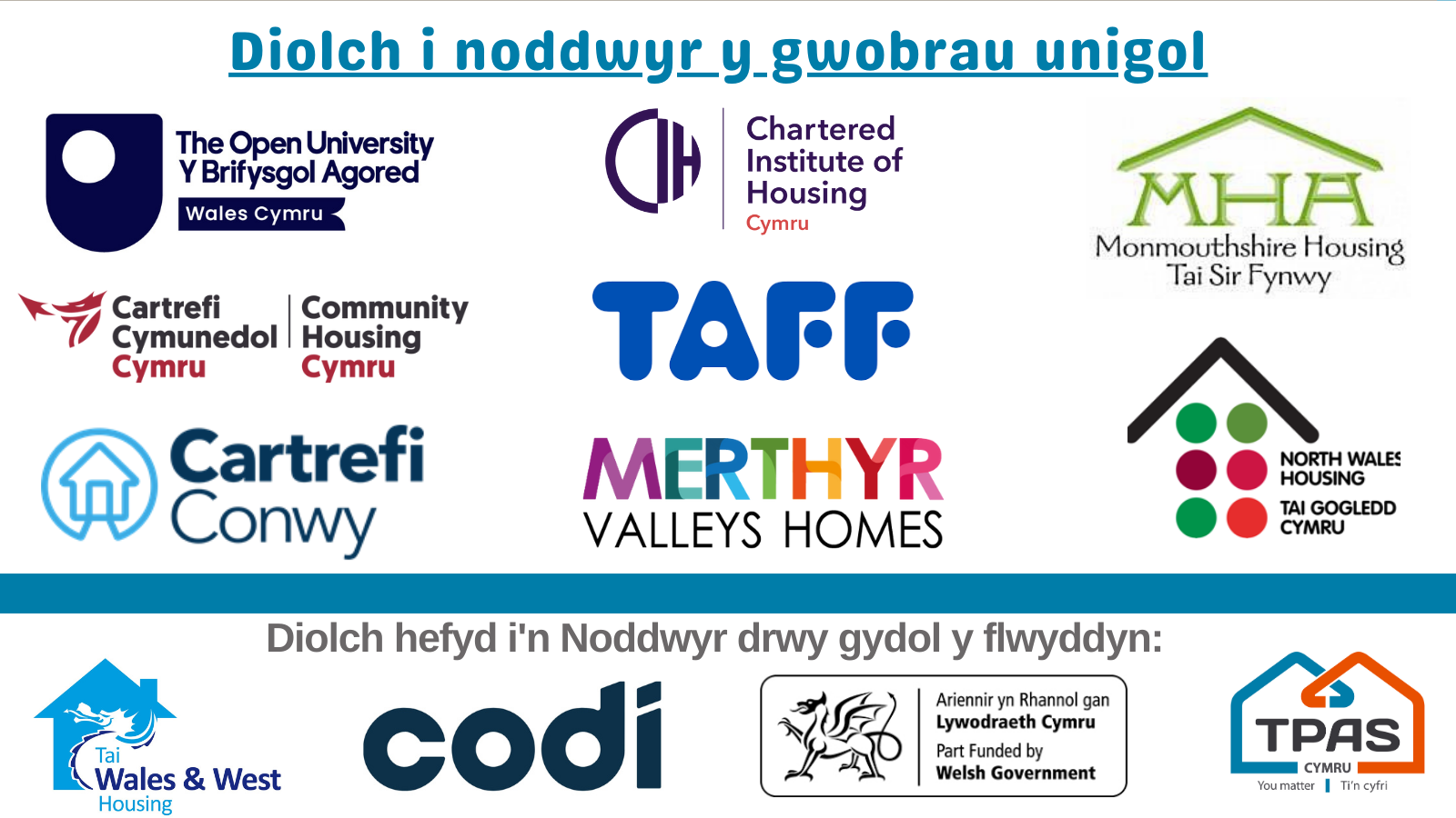 Byddwch yn rhan o’n gwobrau cenedlaethol yn 2026 – ffordd wych o rannu, cydnabod a dathlu’r gwaith gwych rydych chi a thenantiaid yn ei wneud yn eich sefydliadau a’ch cymunedau